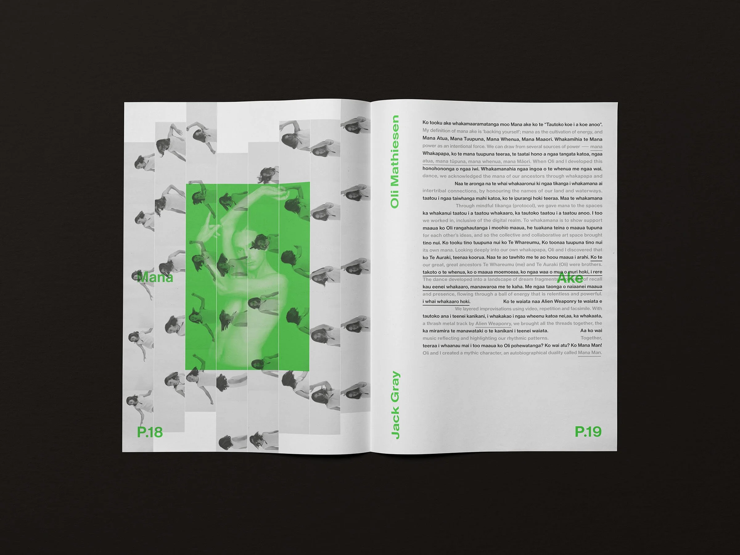 We worked with Atamira Artistic Director Jack Gray and graphic designers Osborne Shiwan to bring a compelling and consistent format to all artistic statements featured in the print programme. These included the opening text by Gray, as well as set design, lighting, costume and video design statements, and all eight dance descriptions.